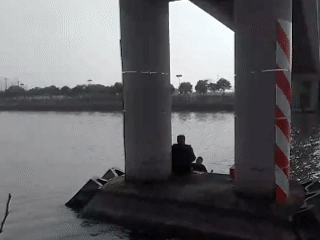正在水中桥墩处沉浮