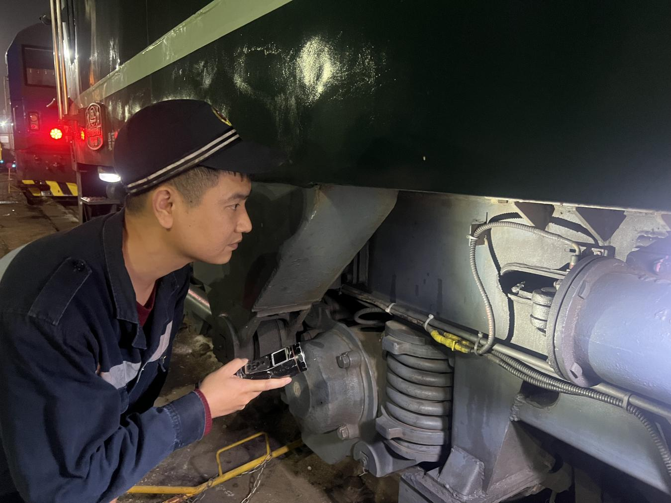 “晚一分钟修复,就可能耽误一整列车的人,打乱整个调度计划。”他一边向组员解释,一边俯身开始排查。强光手电沿着线路一寸寸移动,他的目光如鹰隼般沿着线路一寸寸巡检——这是他在行修组工作的第12年,也是第12次护航春运。