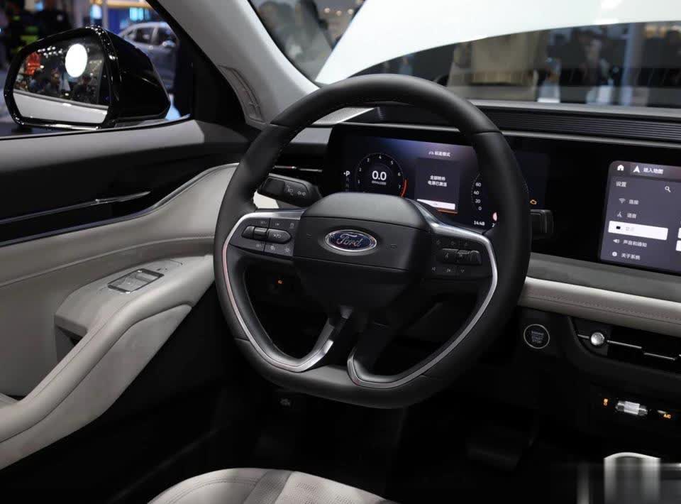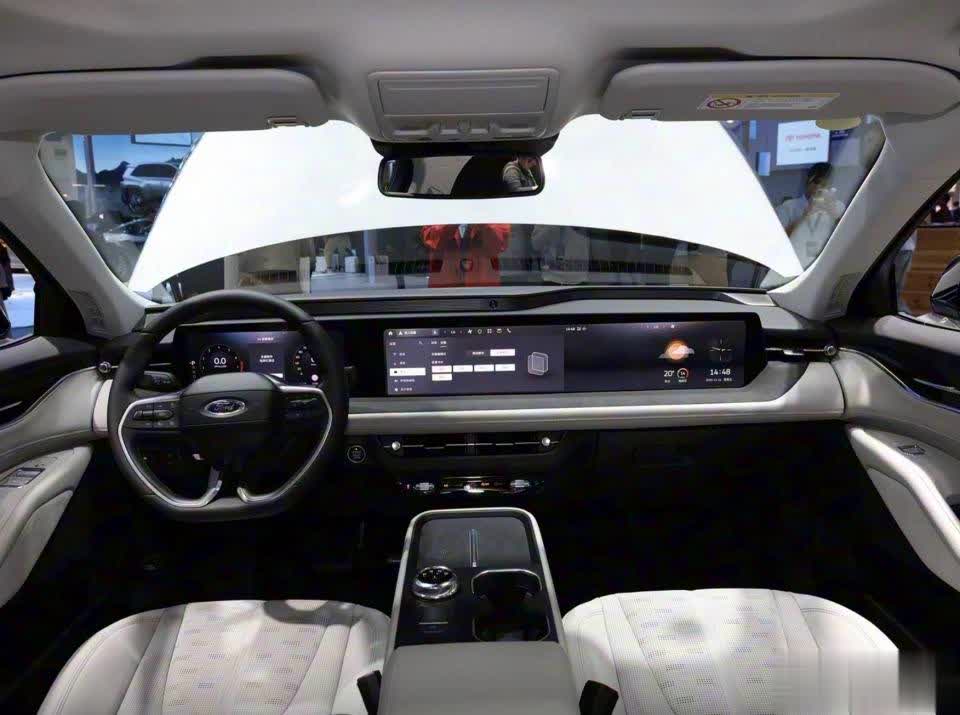 内饰的核心升级在于智能座舱的进化,标配的车规级高通骁龙8155芯片为车机系统提供了强大的算力支撑,彻底解决了旧款车型车机卡顿的问题。中控台延续了标志性的“带鱼屏”设计,12.3英寸全液晶仪表盘与27英寸4K中控屏连为一体,显示清晰细腻且操作流畅顺滑。车机系统搭载了福特最新的SYNC+ 5.0智能互联系统,支持语音交互、车联网、OTA升级等功能,语音识别响应速度快至0.2秒,可实现四音区精准识别,无论是调节空调温度还是导航目的地,都能精准快速执行。